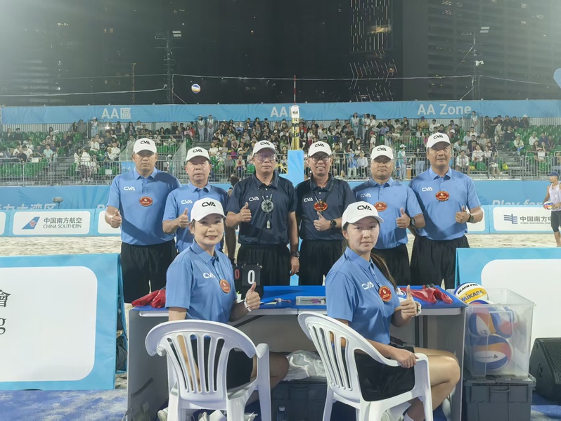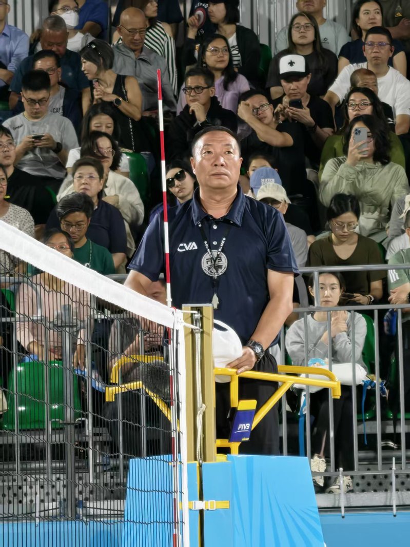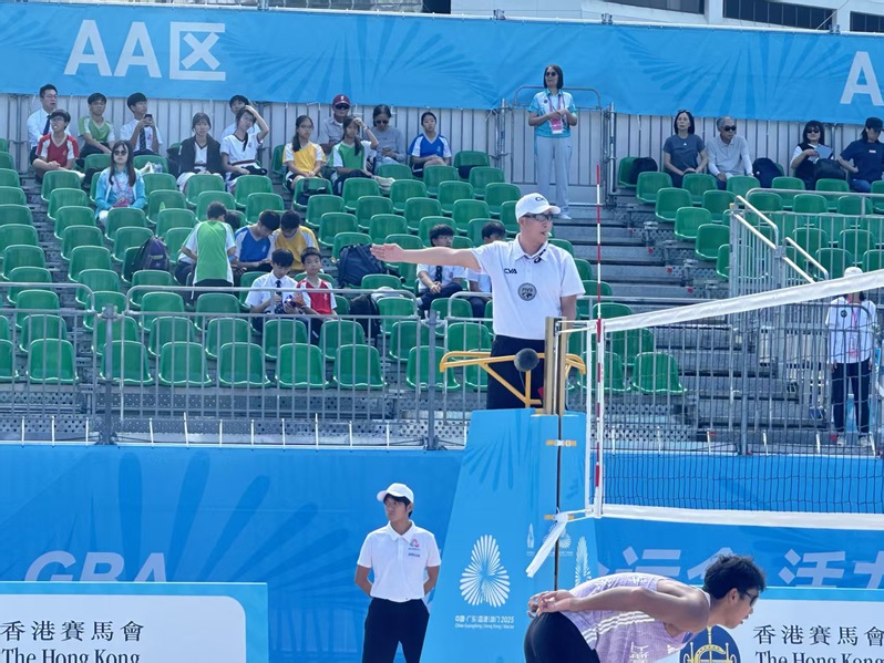 全运会沙滩排球比赛于10月31日—11月10日在香港特别行政区维多利亚公园举行,是香港承办的八个比赛项目中的第一个项目。刘勇老师始终以高度的使命感投入工作。赛前,他积极参与组委会组织的裁判培训,深入研习最新竞赛规则与执裁流程,精准把握赛事判罚尺度;赛中,他坚守岗位、秉公执裁,以敏锐的观察力、精准的判断力和规范的执裁动作,高效完成每一场比赛裁判任务,赢得了参赛队伍、组委会及同行们的一致认可与赞誉。