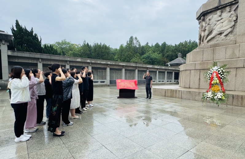 上午,党员们参观淮海战役烈士纪念塔园林。细雨中,烈士纪念塔巍峨矗立,全体党员怀着崇敬之心列队肃立,向革命先烈三鞠躬,表达深切缅怀。在鲜红的党旗下,大家举起右拳,重温入党誓词,铿锵誓言回荡在塔前,既是对初心使命的回望,更是对责任担当的承诺。步入淮海战役纪念馆,党员们在“一切为了人民”—淮海战役廉政教育专题展展区久久驻足,展厅于2014年增设,展室内,支前民工使用的小推车,密密麻麻记录着采购明细的账簿……一幅幅图片,一句句话语,一件件实物,记载着当年革命先辈忠于信仰、清廉守纪、人民至上的故事。大家深刻认识到,淮海战役的胜利离不开铁的纪律保障,而如今贯彻中央八项规定精神,正是对优良作风的赓续,唯有作风过硬,才能凝聚干事创业的合力。
